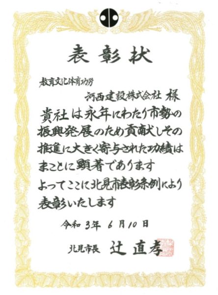 令和3年度 教育文化体育功労表彰を受賞しました。 2021.06.10 弊社はこの度、北見市長より教育文化体育功労表彰を受けました。 昭和58年に社員間の親睦、チームワークの向上を目標としてカーリングを「社技」として取り入れ、女子チームを 世界選手権や冬期五輪へ出場させた事と、平成7年には会社敷地内に室内パイプリングリンクを完成させ、一般に 開放してカーリング競技普及・発展に貢献し、多くの五輪出場選手の輩出に関係し地域体育振興や北見市勢の発展、 日本カーリング競技の振興に大きく寄与した事によるものでした。